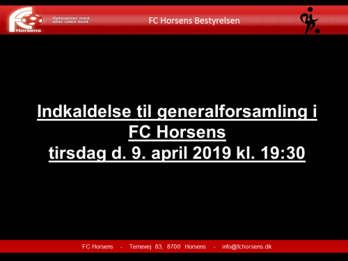 Indkaldelse til generalforsamling i FC Horsens tirsdag d. 9. april 2019 kl. 19:30