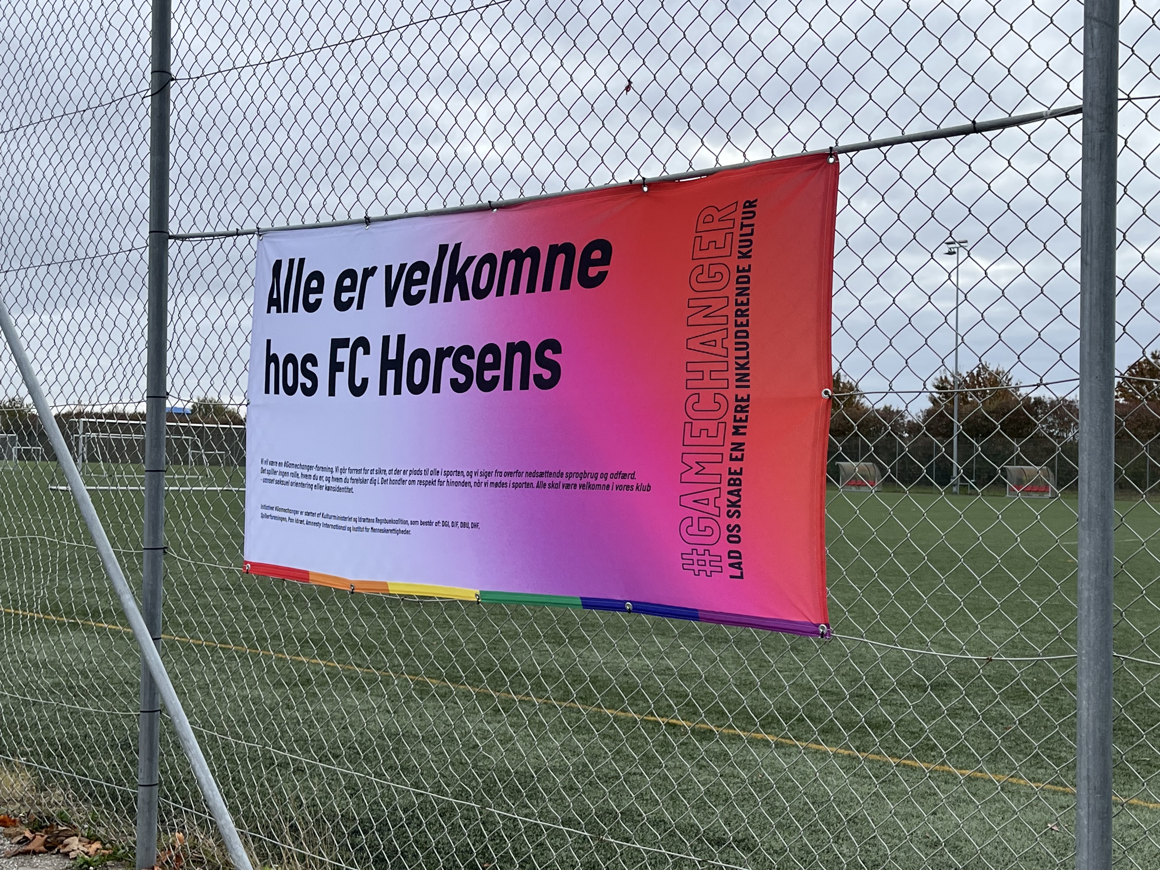På nuværende tidspunkt kommer det til udtryk på anlægget og snart vil det også blive synligt på banerne idet vores hjørneflag,anførerbind samt kampbold vil være regnbuefarvet- det viser der er plads til ALLE i FC Horsens 🌈