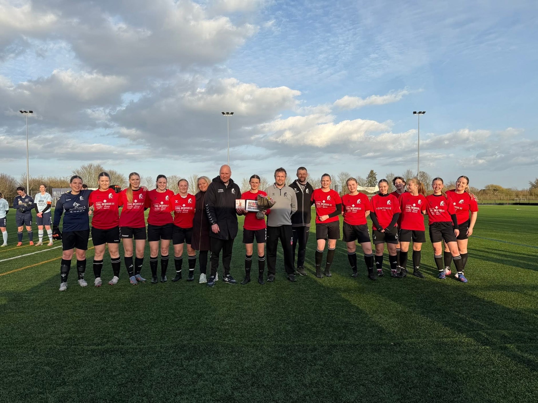 Inden kampen overrakte Pigeudvalget blomster, en gave samt en fotocollage til en stolt anfører.