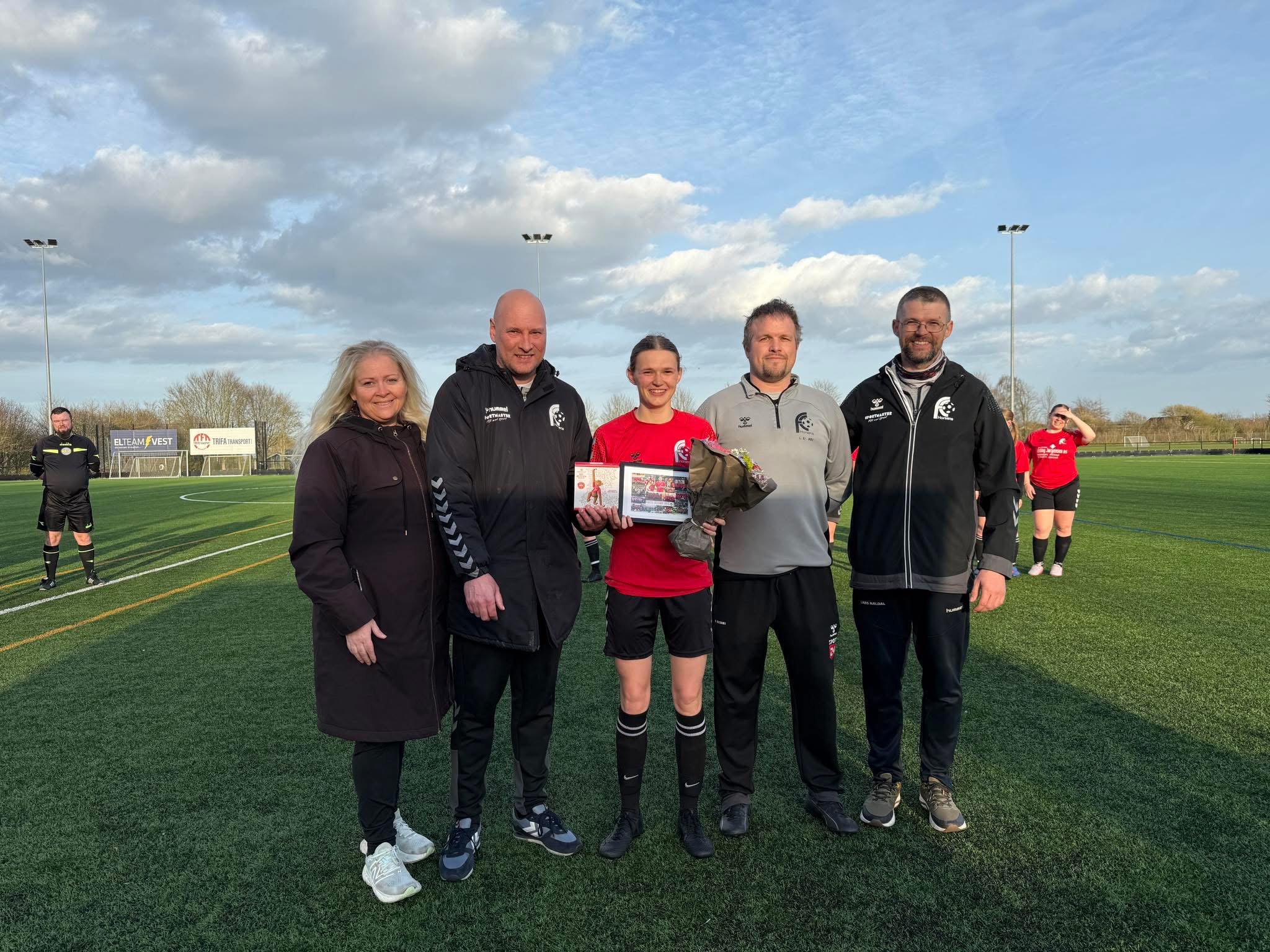 Det er en stor ære at kunne overrække dig blomster og en gave for 100 førsteholdskampe for klubben. 💯⚽️💐