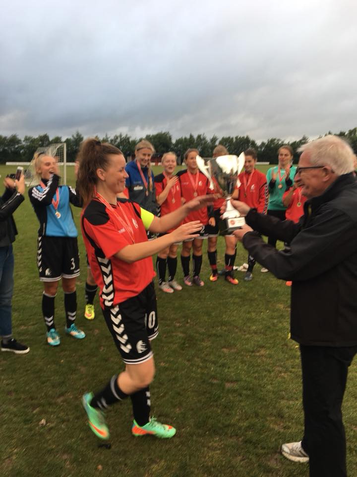 Anfører Helena Jacobsen får overrakt pokalen